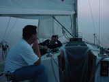 Description: De nacht valt in en de `vliegen-vitrage` wordt voor de ingang van de kajuit gehangen